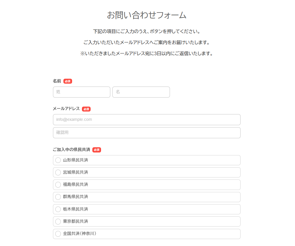 ②お問い合わせフォームに必要事項を記入