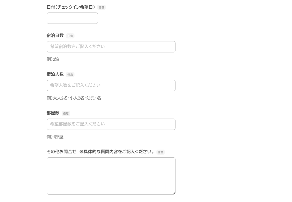 宿泊料金照会の以外は「その他のお問い合せ」にご記入ください。