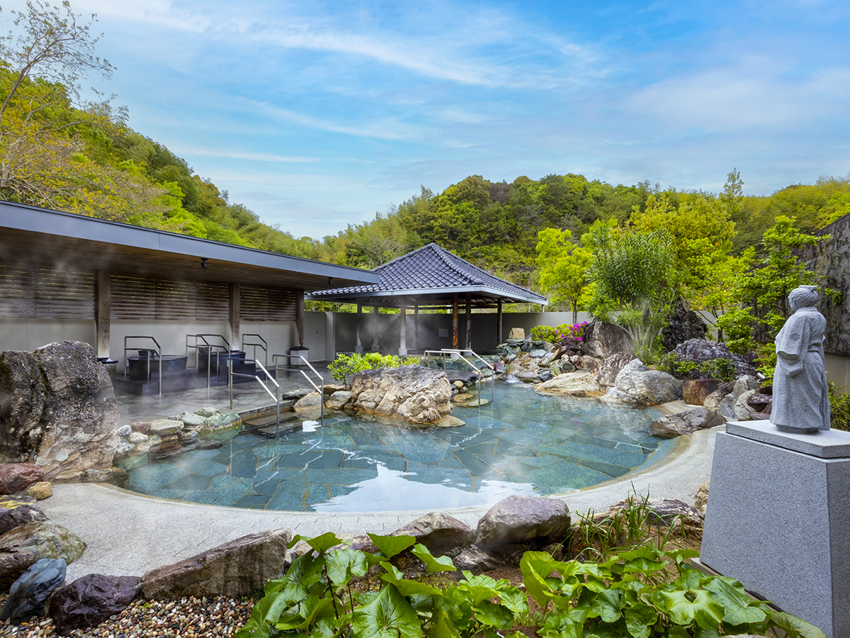 高知龍馬空港から車で約20分。琴ヶ浜と美しい太平洋の景色を見下ろす高台に位置し、喧騒から離れた開放感あふれる露天風呂は高知県の名勝桂浜と室戸岬をモチーフに形作っています。それぞれに坂本龍馬像と中岡慎太郎像があるため、周辺観光後の余韻を館内でもお楽しみいただけます。