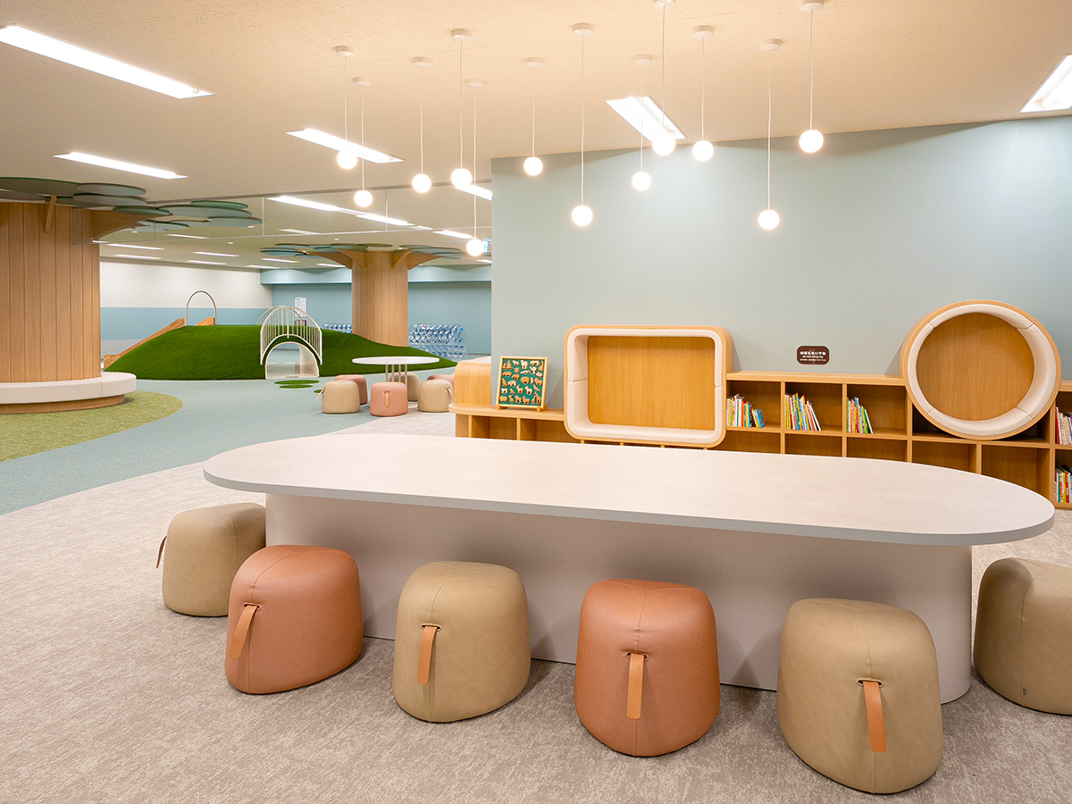 ※室内「NASOBIBA(なそびば)」:小さなお子様向けの丘や走り回っても安心の広々としたスペースなど、楽しく遊べる遊具を設置しました。お子様と一緒に絵本を楽しめるコーナーも設置いたしました。 ※野外キッズスペース「NASOBO(なそぼ)」・「芝生広場」も同様にお楽しみください※ご宿泊のお客様は、チェックイン前やチェックアウト後も無料でご利用可能。